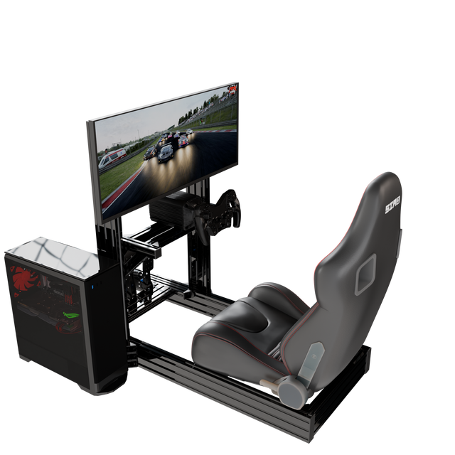 Introducing the ultimate racing simulator, designed to bring the thrill of the track right into your home! This simulator boasts a robust construction with a high-grade aluminum 40120 Modular, High Rigidity frame, ensuring durability and stability even during the most intense racing sessions. The centerpiece of this setup is a stunning 49” curved ultra wide, 240Hz refresh monitor, specifically engineered for gaming, providing a breathtakingly immersive experience with its vibrant colors and lightning-fast response times.